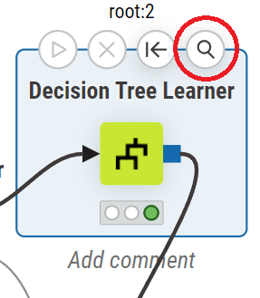 ノードにマウスポインタを重ねて虫眼鏡のマークが出るものは、そのマークをクリックして結果を確認することが出来ます。ここではDecision Tree LearnerノードとScoreノードのデータ確認方法を紹介します。