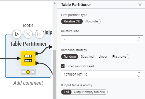 初期設定ではデータの70%を学習用に、30パーセントを検証用に振り分ける設定になっています。