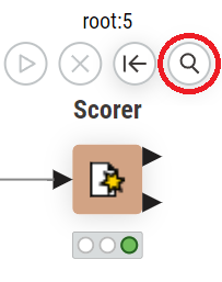 KNIMEでは、ノードにマウスポインタを重ねて虫眼鏡アイコンが表示される場合、そのアイコンをクリックすると結果を確認できます。