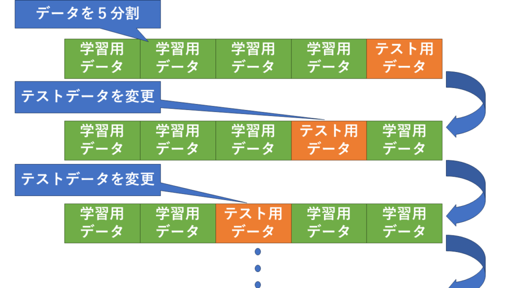 - これをテスト用データを変えながら5回繰り返す