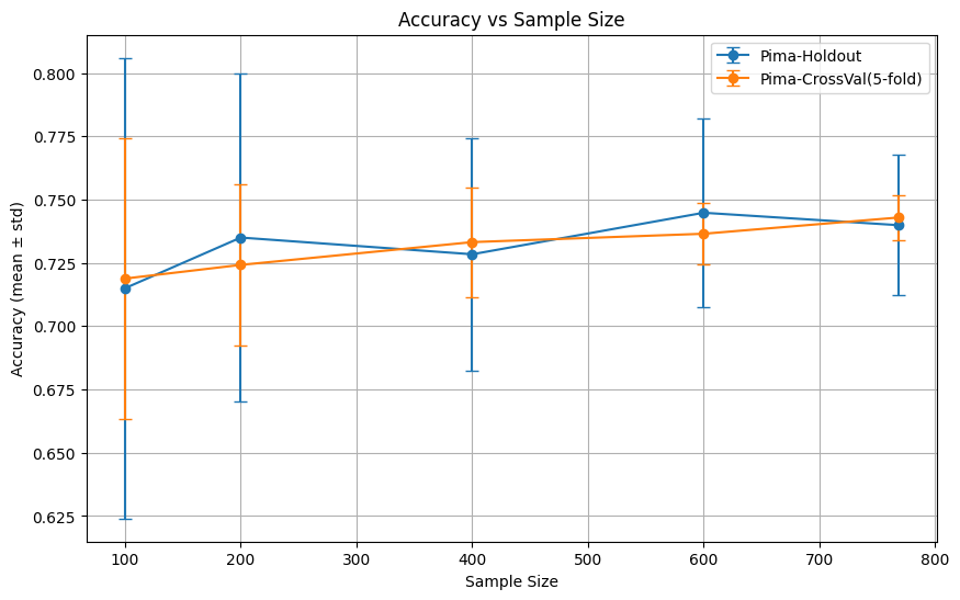 - 比較方法:ホールドアウト法 vs 5分割クロスバリデーション(k=5)