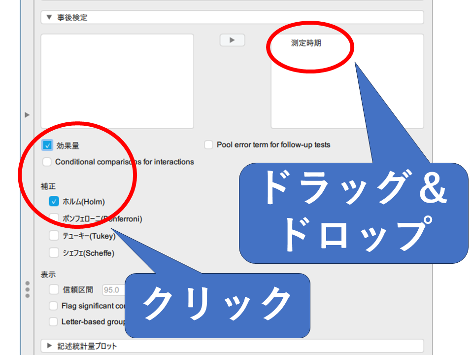 さらに球面性のチェック+効果量+多重比較+グラフ作成まで一気に行う方法を紹介します!