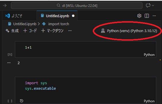 - Python では torch が見えない