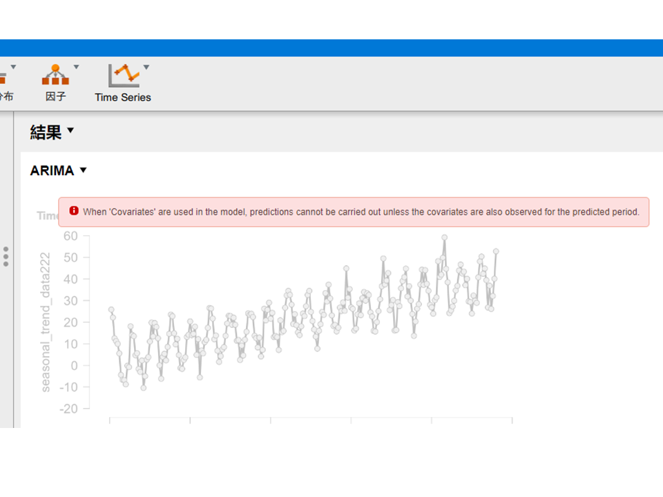 データに欠損があると分析が実行できないことがあります。その場合はこんなメッセージが出ます。