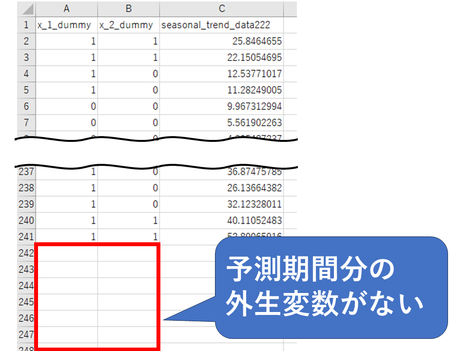 予測期間分の外部変数がない