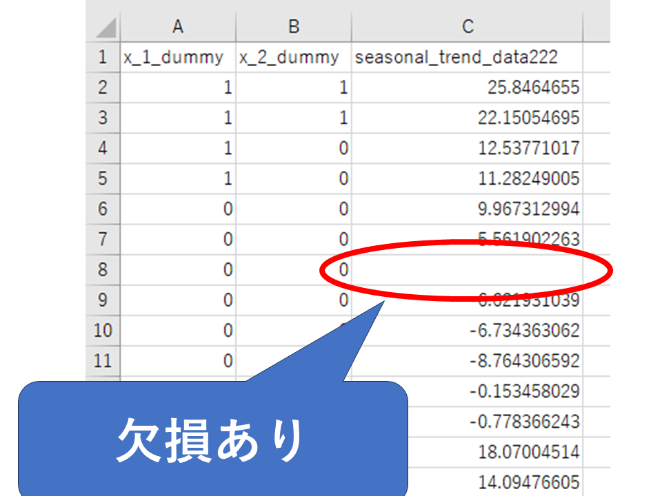 - 事前に空欄のセルがないか確認する(欠損があるとエラーになる)