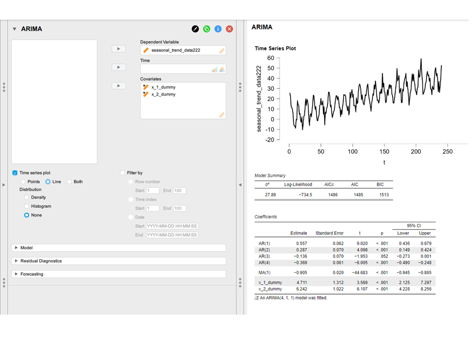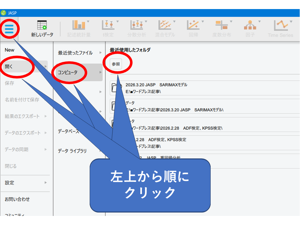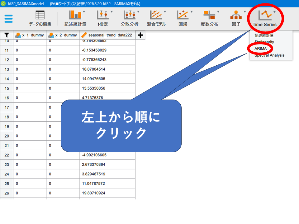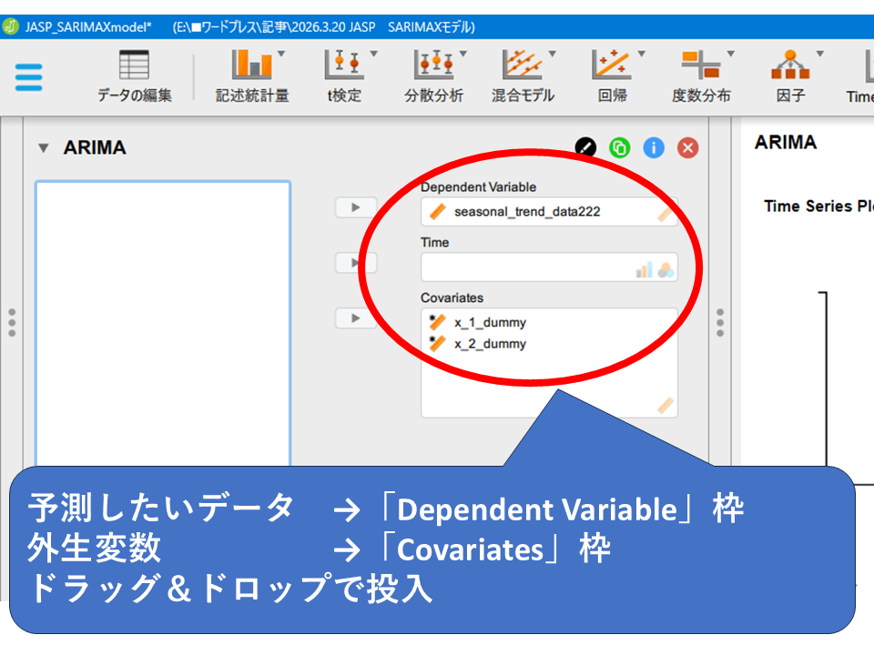 この記事ではSARIMAXモデルの概要と、できること・できないことを整理し、JASPを使った実際の操作手順を紹介しました。
